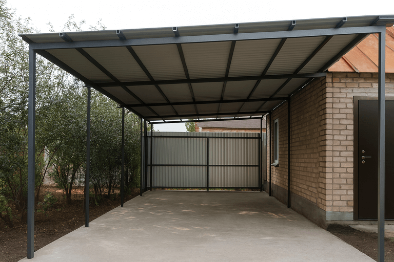 Навес для автомобиля из профильной трубы — это функциональное и прочное решение для защиты транспортного средства от осадков, солнца и ветра. Конструкция отличается долговечностью и возможностью адаптации под особенности квадратуры участка и предпочтения заказчика.